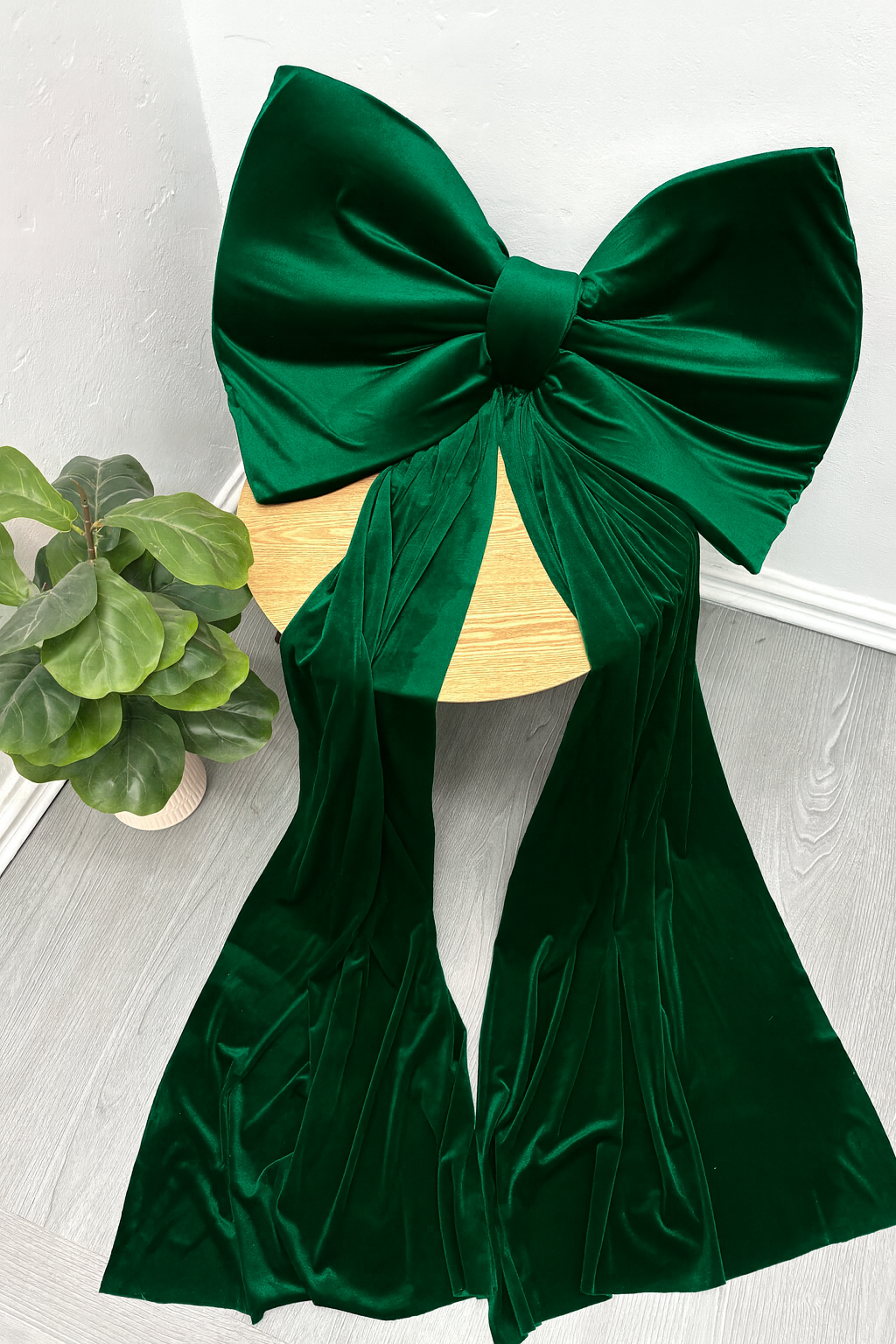 Fundiță mare de decor verde Crăciun / brad din catifea