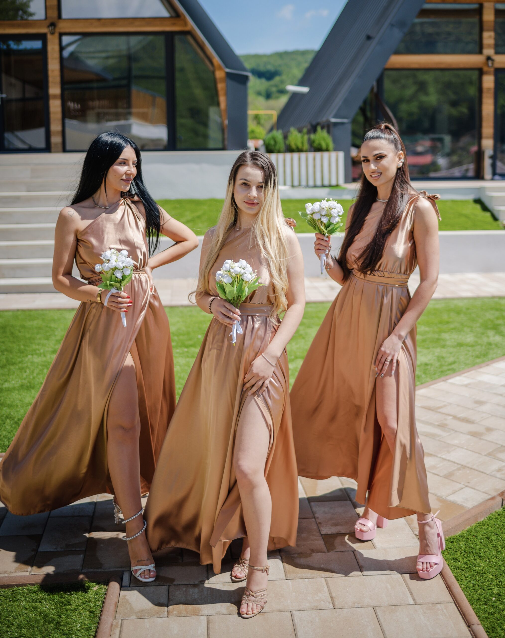Rochie domnișoara de onoare pe o parte lungă cappucino