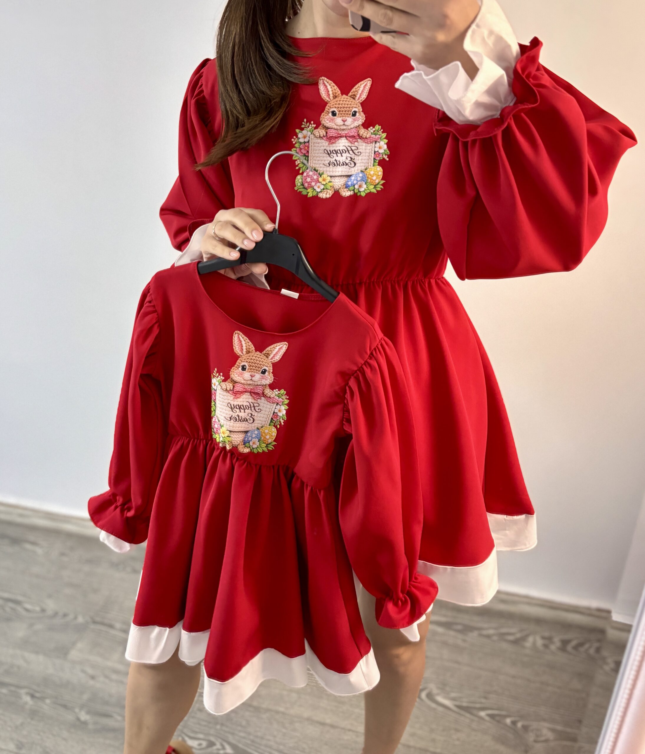 Confecționate din barbie elastic cu margini din poplin. Timp de fabricare 3-5 zile lucratoare. Setul conține 2 rochițe , una pentru damă și una pentru fetiță.